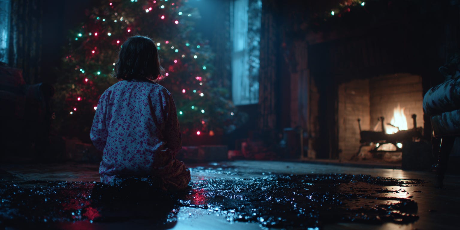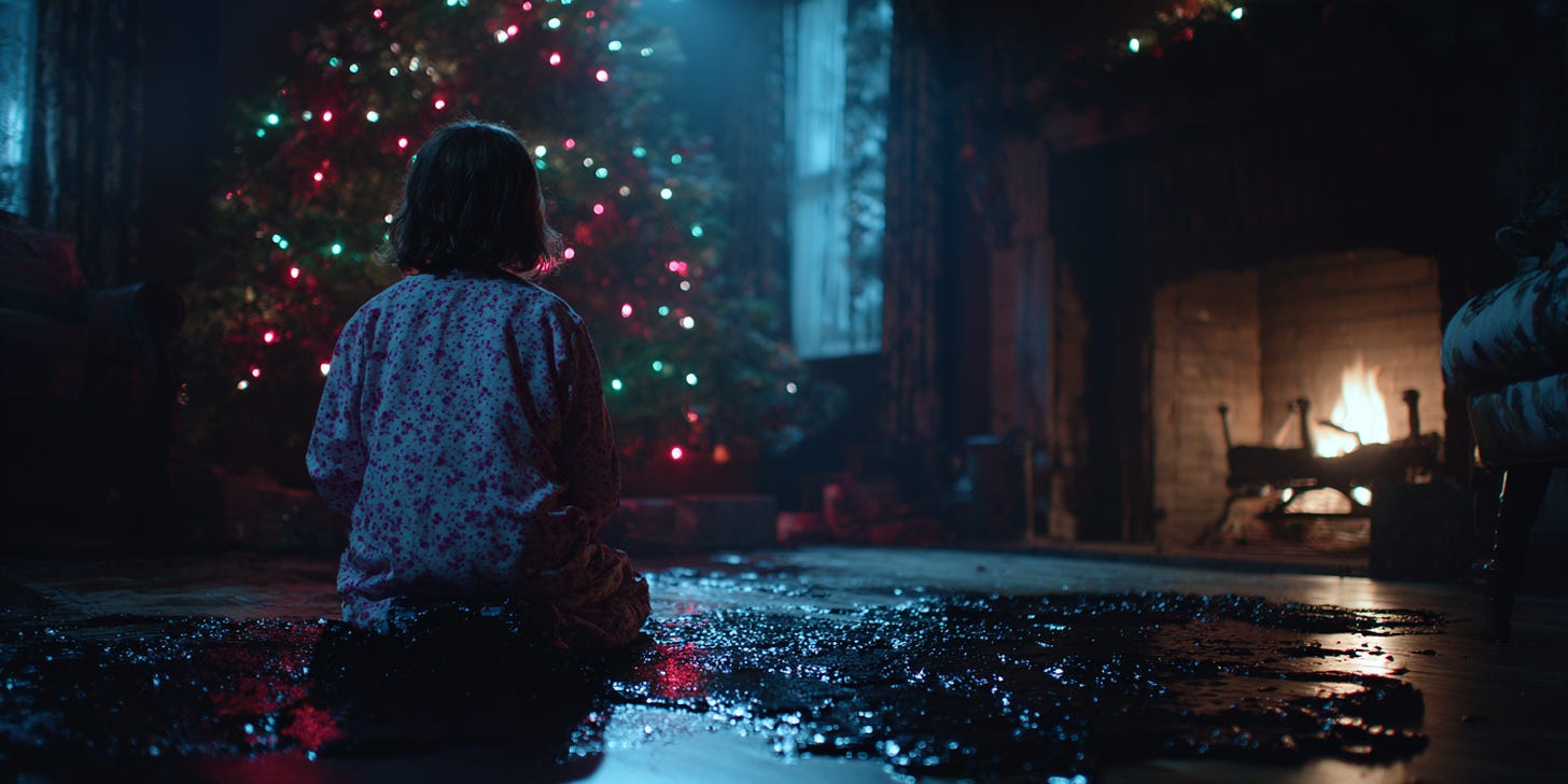 The stockings. They’d been pulled down from the mantel and left to soak in the moist grime. Worse, they were empty. She dropped the sticky stocking, not angry at it, just disappointed. The muck felt like molasses on her fingers but she didn’t dare taste it. She wiped her hand on her pajama pants and followed the trail of muck down the hall.